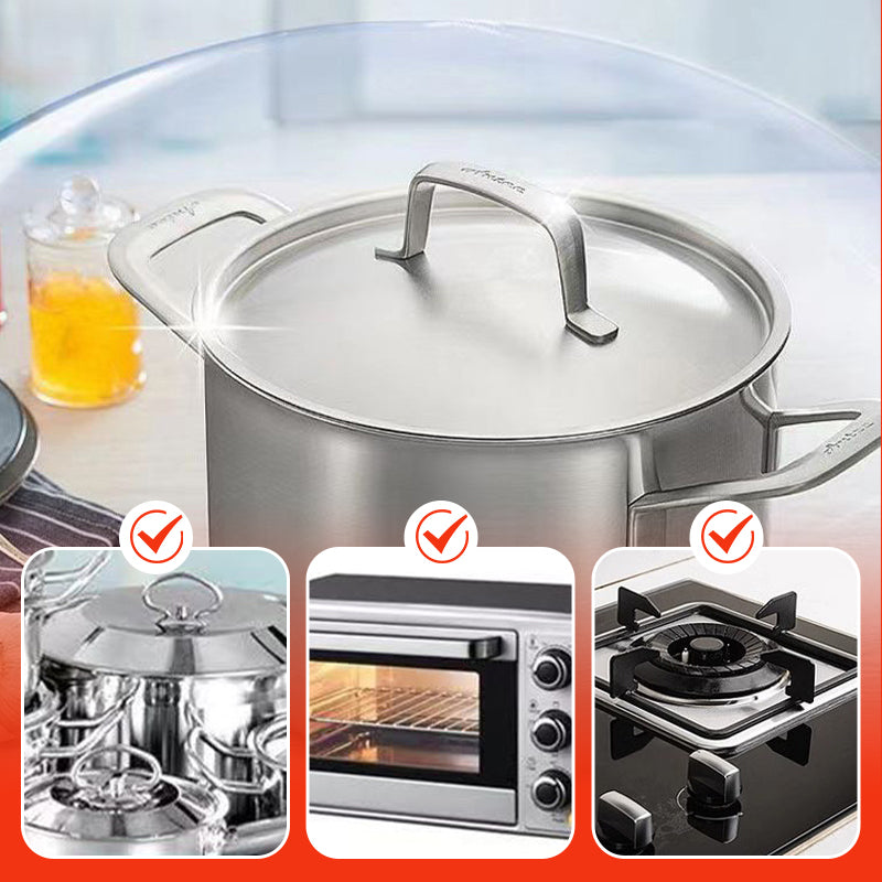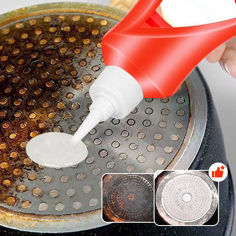 REMOVE MANCHAS ESCURAS INSTANTANEAMENTE: Dissolve efetivamente manchas escuras teimosas, resíduos queimados e acúmulo de gordura em panelas, frigideiras e utensílios de cozinha, restaurando seu brilho original.
